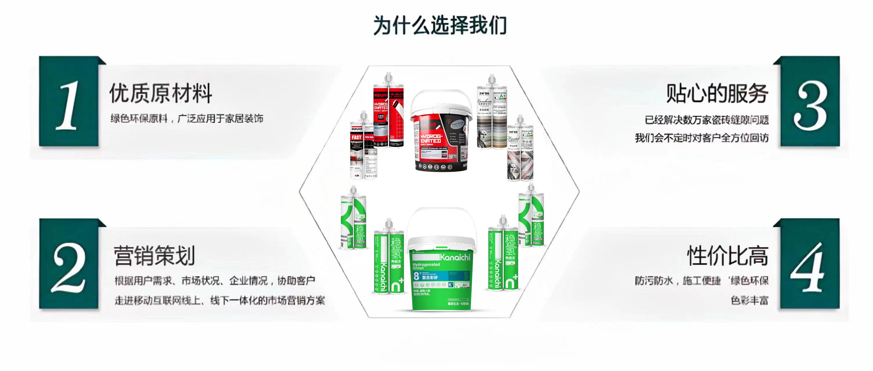 卡耐馳是一家集銷(xiāo)售、施工于一體,以高起點(diǎn)、高品位、高要求的銷(xiāo)售經(jīng)營(yíng)理念的高科技公司。經(jīng)公司不斷創(chuàng)新,選用優(yōu)質(zhì)原材料及精益求精的工藝,傾力打造出“卡耐馳”高端美縫產(chǎn)品:環(huán)氧彩砂、全啞光陶瓷泥、美縫劑等三大系列75種色彩的產(chǎn)品,滿足客戶的需求,市場(chǎng)的認(rèn)可。